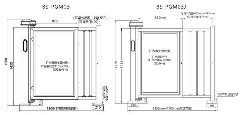 ●根据不同场合的人行通道,可选择不同的开门方向;