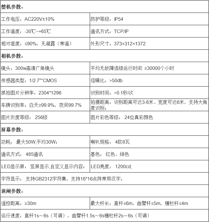 ● 集车牌识别、道闸、摄像、存储、补光、显示及语音播报为一体;