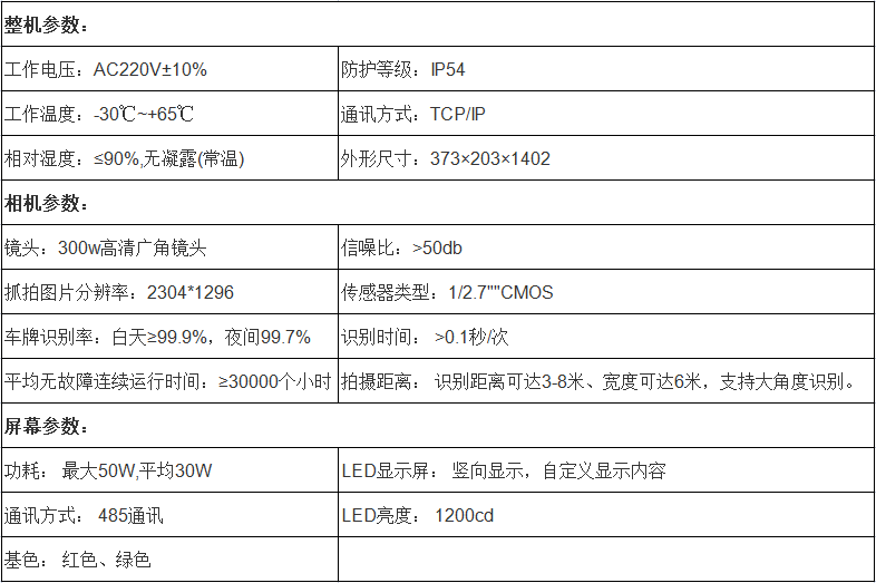 ● 双色LED显示屏,实现车牌收费信息等显示;